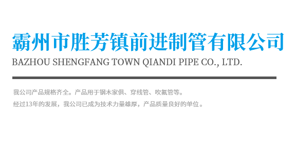 Bazhou Shengfang Town Qiandi Pipe Co., Ltd. 霸州市勝芳鎮(zhèn)前進(jìn)制管有限公司位于河北霸州市勝芳鎮(zhèn)開(kāi)發(fā)區(qū),地處京、津、保三大城市中心地帶。北距北京120公里,東距天津45公里,西有京九鐵路,北有津保高速公路貫通。